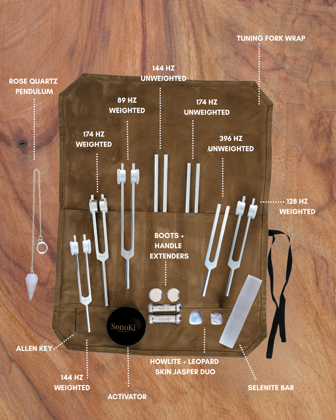 • 1 x Tuning Fork Wrap (holds 7 forks)